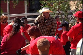 Two hundred Toyota Motor Corp. volunteers braved high winds Saturday in Canyon Country at the Gentle Barn to build a new amphitheater, paint the barn, visit with the animals and hand over the keys to a brand new Toyota Highlander.