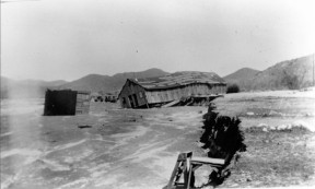 Structures in the Acton area are lost as the banks of the Santa Clara River crumble, probably in the flood of March 1938 or February 1941. Photo: SCVHistory.com
