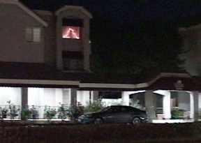 Lights in the shape of a tree in an upstairs unit at the Willows: A silent protest?