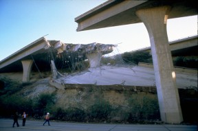As in 1971, elevated freeways in the Newhall Pass fell in 1994. FEMA photo by Robert A. Eplett, 1/17/1994