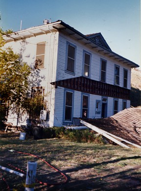 The Pico Cottage in Mentryville, where the writer lived in the 1960s, was knocked off of its foundation and its porch roof fell off in the 1994 Northridge Earthquake. Photo circa 1995 by Leon Worden.
