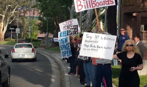 Protesters make their views about electronic billboards known outside Santa Clarita City Hall, Tuesday, March 25, 2014 | Photo: Justin Malson/SCVTV