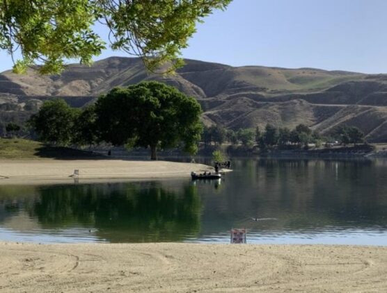 Castaic Lake is located north of Santa Clarita. Castaic Lake is easily found on Google maps. There is a small fee to enter the lake area. To get there, simply take the 5 North, exit right on to Lake Hughes Road, turn left on to Ridge Route Road. The entry to the park will be on your right