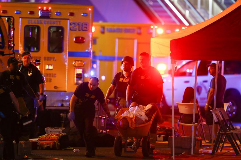 Police shut down the usually busy Las Vegas Boulevard and authorities across the state and federal ranks converged onto the scene as dozens of ambulances ferried those struck by gunfire. Nearby Interstate 15 and flights at McCarran International Airport were briefly closed. Hospital emergency rooms were jammed with victims delivered by ambulance. Others loaded the wounded into their cars and drove them to hospitals.