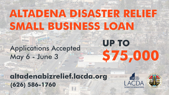 To qualify, businesses must have been in operation for at least six months prior to applying. For complete loan eligibility guidelines and application materials, visit altadenabizrelief.lacda.org. Applications will be accepted on a first-come, first-served basis beginning today at 12:00 p.m., and will close on Tuesday, June 3, 2025, at 12:00 p.m..