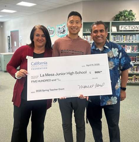 California Credit Union Foundation has awarded a grant to La Mesa Junior High School in Santa Clarita through its Spring 2025 Teacher Grant Program. The grant, given to La Mesa Junior High School Teacher Kamalinphol Punpanichgul, will be used to fund a sumo robot challenge for robotics students.