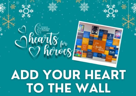 Help children and families facing mental health, substance use, or domestic violence issues by giving to the Hearts for Heroes Fundraising Campaign. The Child & Family Center hopes you will join in giving the gift of hope this holiday season. Your kindness supports children and families in need and lets you honor someone who inspires you.