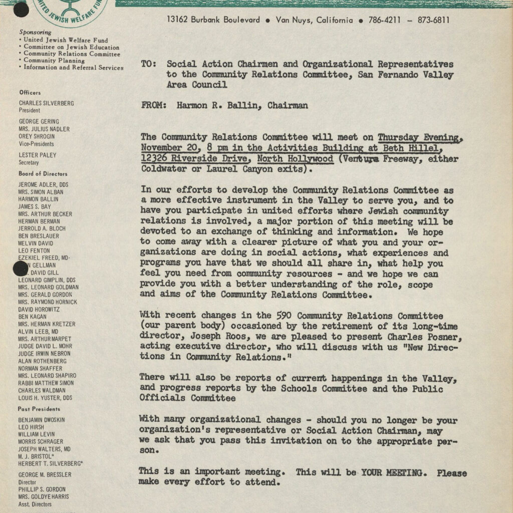The University Library at California State University, Northridge has completed the processing and cataloging of the Los Angeles Jewish Federation Community Relations Committee (CRC) Archives, spanning from 1921 to 2000, providing researchers and the public access to one of the most comprehensive archives documenting the Jewish community’s role in combating antisemitism, fascism and discrimination in Southern California and beyond.