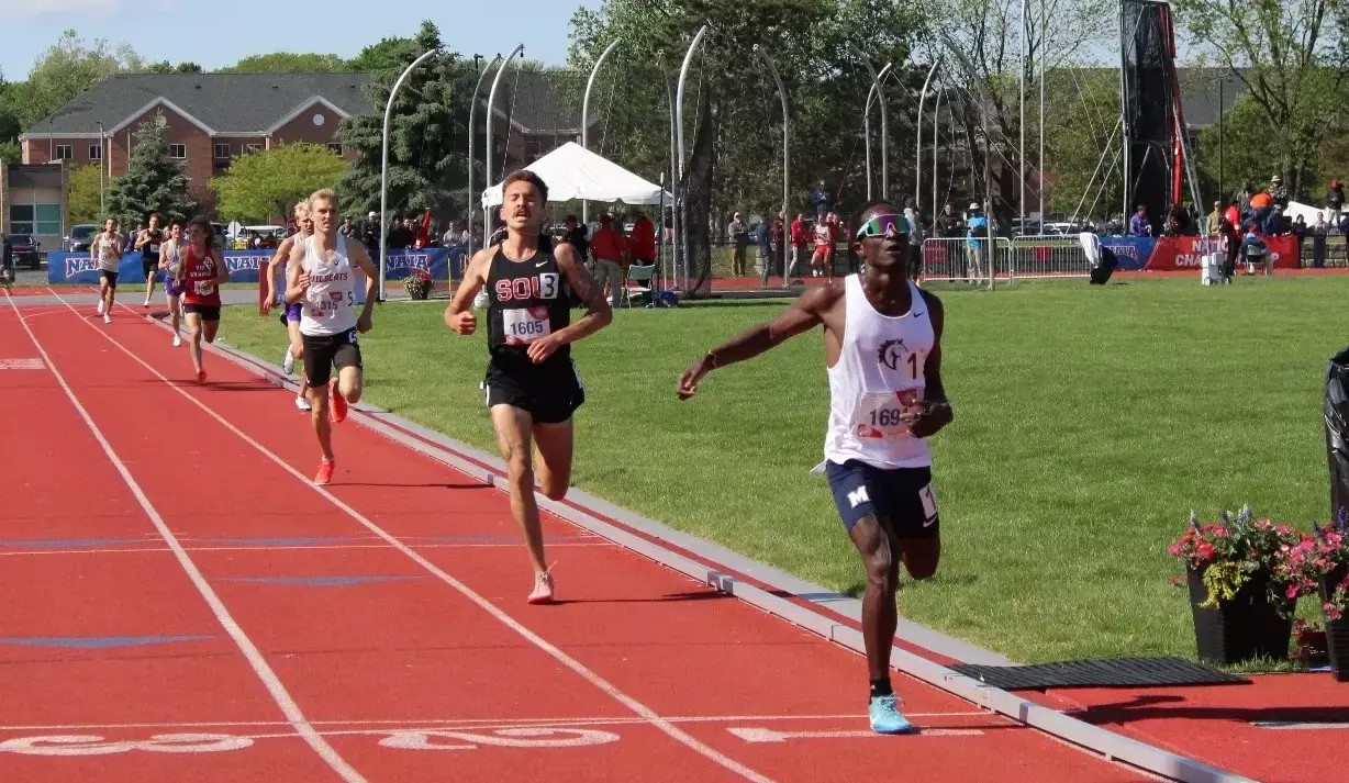 The Master’s University’s Jude DeVries fought off a challenge at the end to win the men’s 5k at the 2025 NAIA Outdoor Track & Field National Championships Friday, May 23, in Marion, Ind.