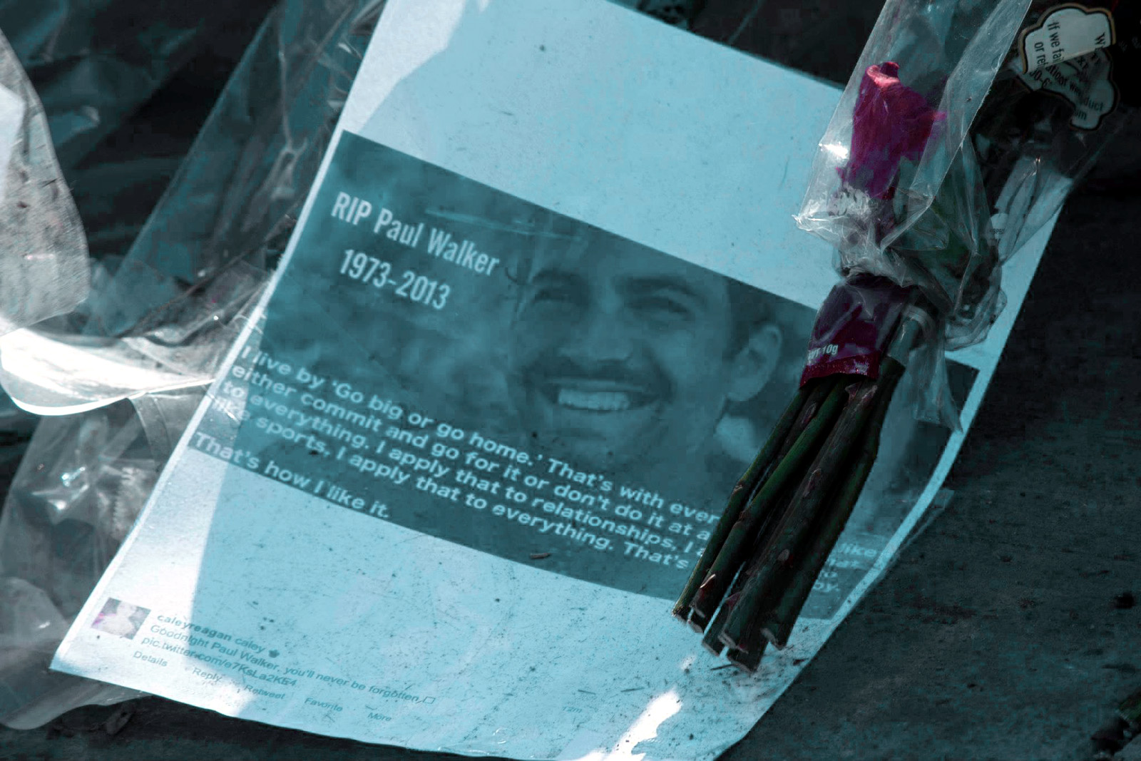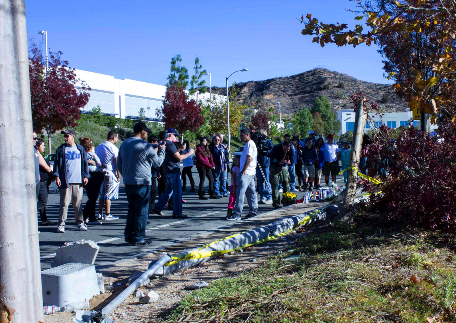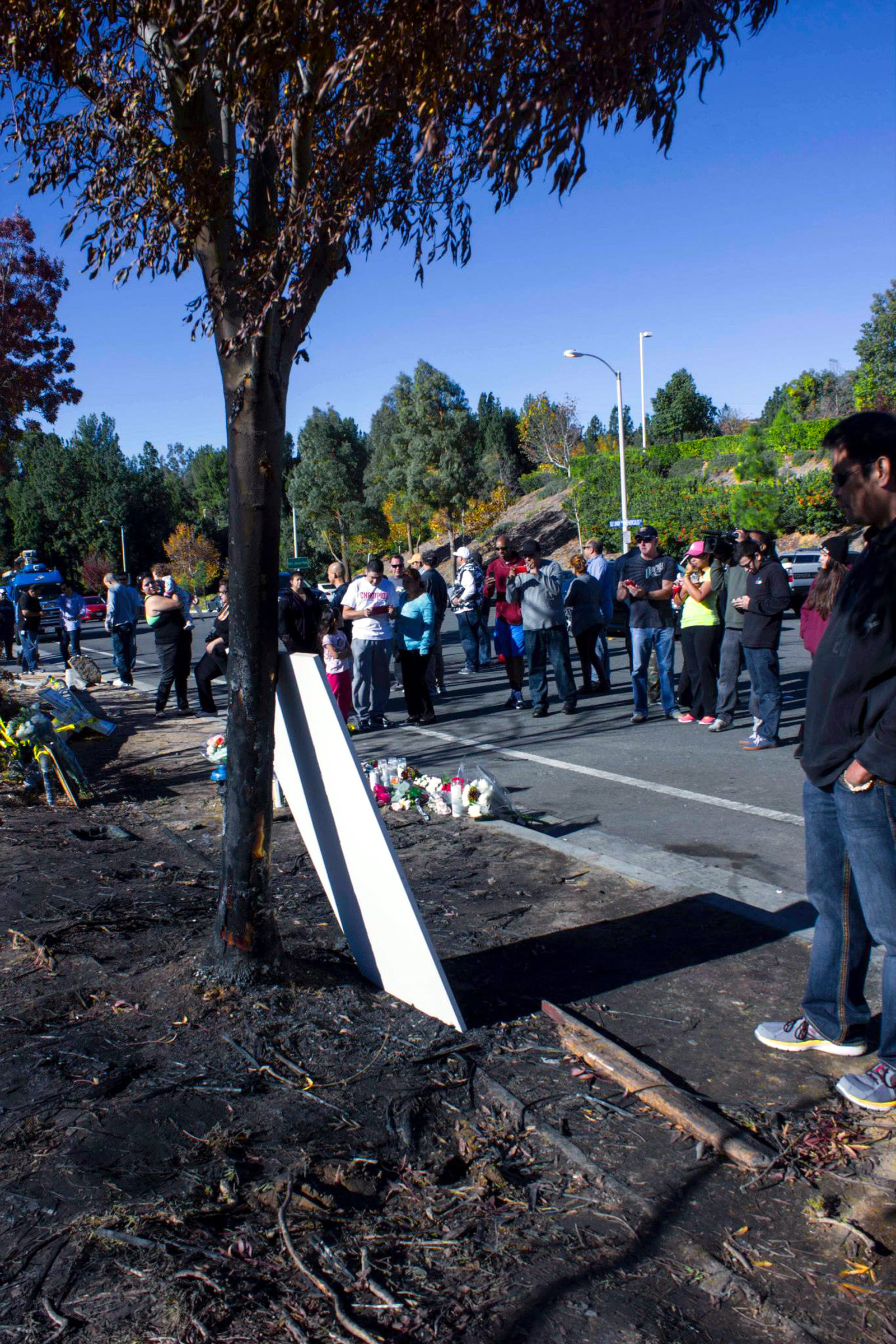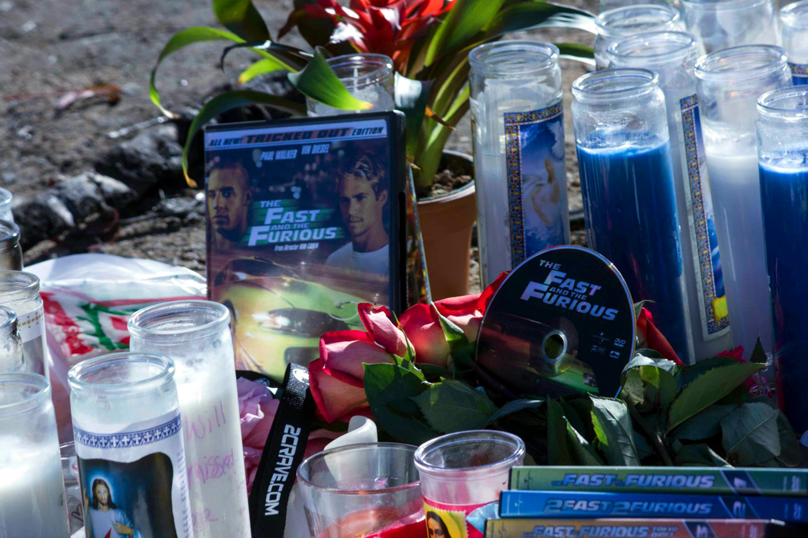 Mourners congregated at the scene Saturday as word of the 3:30 p.m. crash began to circulate on the Internet. They continued to arrive Sunday, leaving behind flowers, personal messages and “Fast & Furious” DVDs and memorabilia.