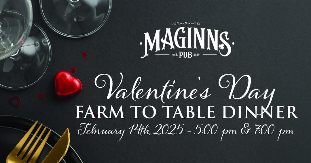 Maginns Pub is hosting a Valentine’s Day five-course farm-to-table Irish Pub style dinner on Valentine’s Day Friday, Feb. 14, at 24480 Main St., #140, Santa Clarita, CA 91321.
