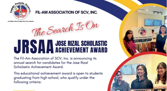 The Fil-Am Association of SCV, Inc. is announcing its annual search for candidates for the Jose Rizal Scholastic Achievement Award.