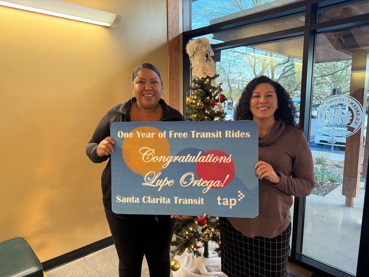 In addition to the festivities, Santa Clarita Transit hosted the Golden Ticket Giveaway, offering residents the chance to win a $365 TAP card by attending the Holiday Light Tour. Congratulations to resident Lupe Ortega, who won the prize, ensuring a year’s worth of free transit rides.