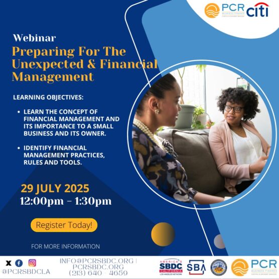 The Small Business Development Center hosted by College of the Canyons will offer a free webinar, “Preventing the Unexpected & Financial Management with Citi” on Tuesday, July 29 from noon-1:30 p.m.