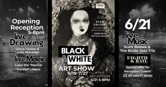 The Santa Clarita Artists Association will host the “Black & White,” art show beginning Thursday, June 19, through Sunday, July 27 at the SCAA Gallery.