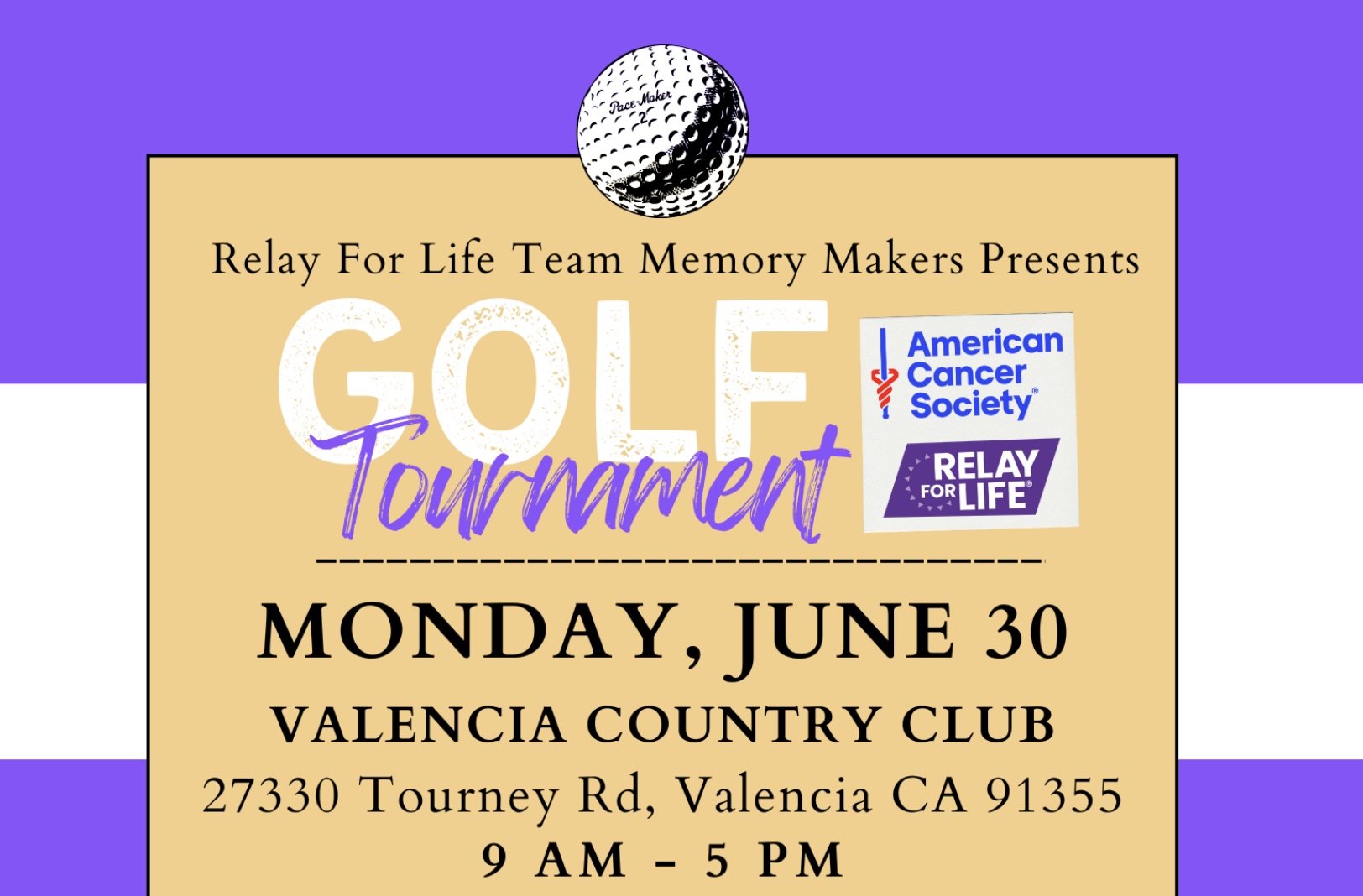 The American Cancer Society Relay for Life Santa Clarita Valley is proud to present its inaugural Golf Tournament Fundraiser Monday, June 30, from 9 a.m. to 5 p.m., at the Valencia Country Club.
