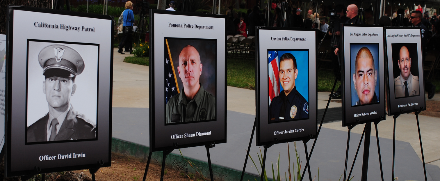 •Officer Shaun R. Diamond, Pomona Police Department, who died on October 29, 2014, from a single shotgun wound to the back of the neck, fired upon him as Officer Diamond and his team breached the door of a residence during the service of a search warrant in the City of San Gabriel.