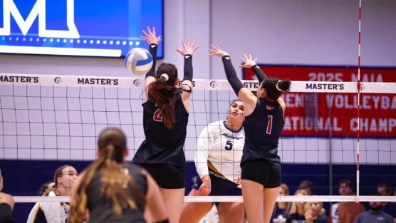 In an epic battle that lasted nearly 2 1/2 hours, The Master’s University women’s volleyball team defeated the OUAZ Spirit 22-25, 25-9, 25-23, 24-26, 15-7 Saturday, Oct. 11 in a huge conference match up in The MacArthur Center.