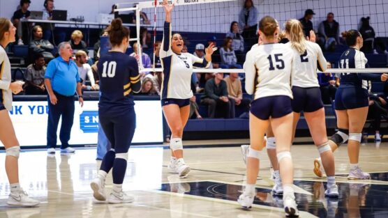 LPU put up a much stronger fight in the third frame, attempting to force the much-needed fourth set. TMU continued to pour it on offensively, forcing multiple errors and leading 7-1. But Life Pacific didn’t fade, and rallied to come within one point at 13-12. But TMU slammed the door with back-to-back kills from Gebhards and McKenna Brady notched the game-winning kill from Kate Wagner.