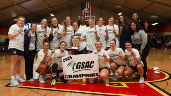 The Master’s was led by All-GSAC Forward Lexi Hernandez’s 14 points, plus she pulled down 10 rebounds for her 11th double-double of the season. Auble had 11 and Alli VanKooten dropped 10 and grabbed a team-high 14 rebounds.