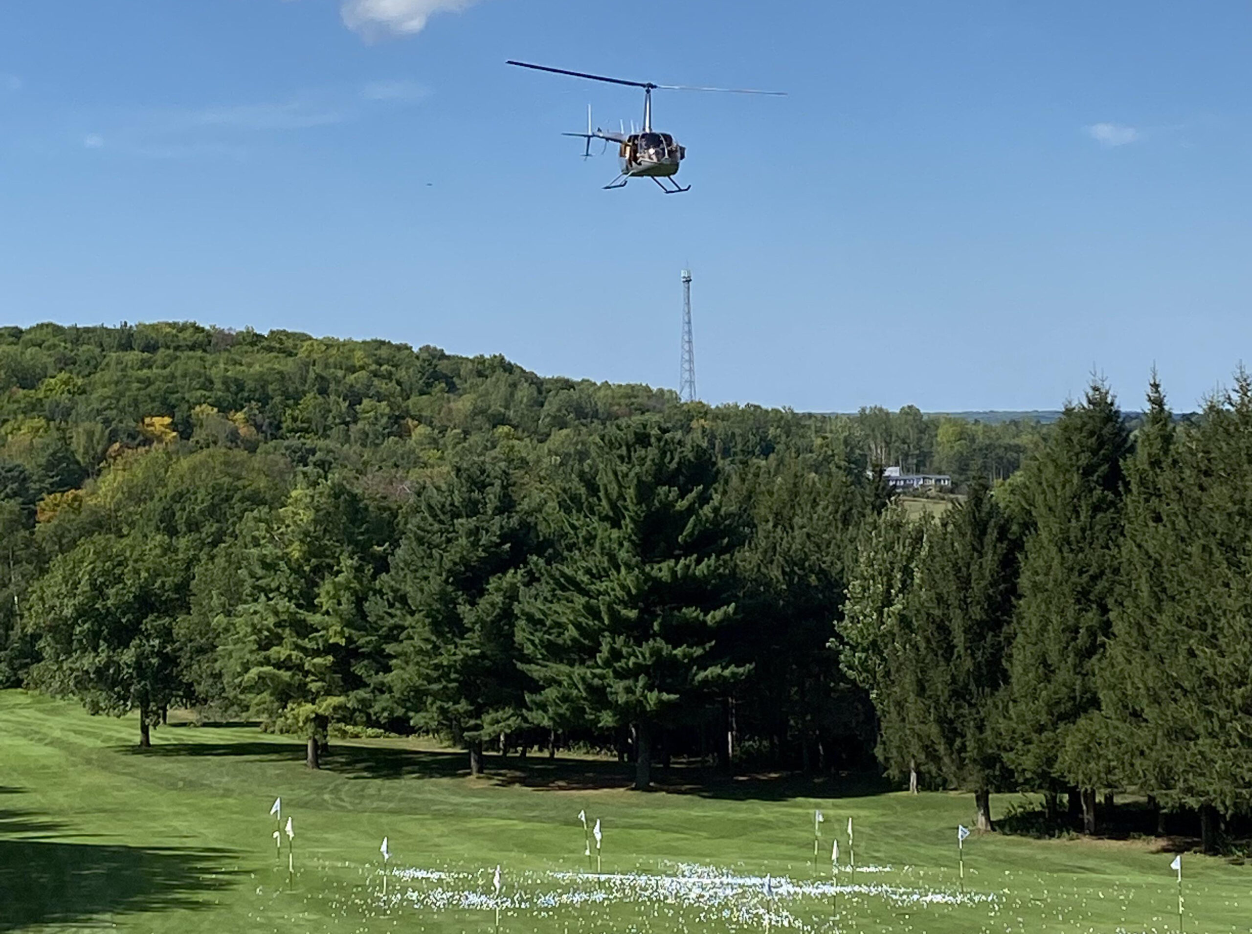 In memory of Wayne Spears, a helicopter will hover over the greens, releasing 1,800 golf balls toward a target hole.