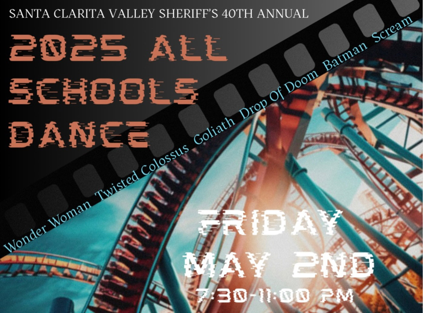 The Santa Clarita Valley Sheriff’s Station 40th Annual All Schools Dance will be held Friday, May 2, 7:30-11 p.m. at Six Flags Magic Mountain.