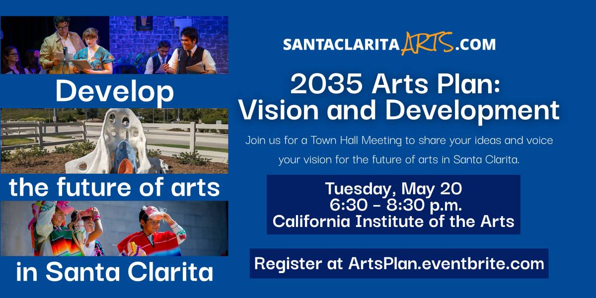 The city of Santa Clarita Arts Commission invites the public to the 2035 Arts Plan: Vision and Development Town Hall Meeting, 6:30-8:30 p.m., Tuesday, May 20 at the California Institute of the Arts.