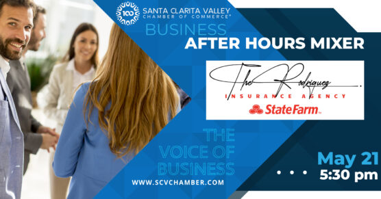 Join the Santa Clarita Valley Chamber of Commerce for the May Business After Hours Mixer on Wednesday, May 21, 5:30-7:30 p.m. at Henry Rodriguez State Farm at 27141 Hidaway Ave., # 207, Santa Clarita, CA 91351.