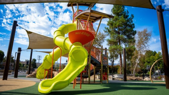 Now the site has been enhanced, updated and will be reopened for the public to enjoy once again. The upgrades truly reimagined what a neighborhood park can be. The playground has been redesigned from the ground up — complete with a faux rock wall, rope ladder, turf-covered mound and slides, all beneath a new shade structure so children can play year-round in comfort. An ADA-compliant restroom building ensures that the park is accessible to all.