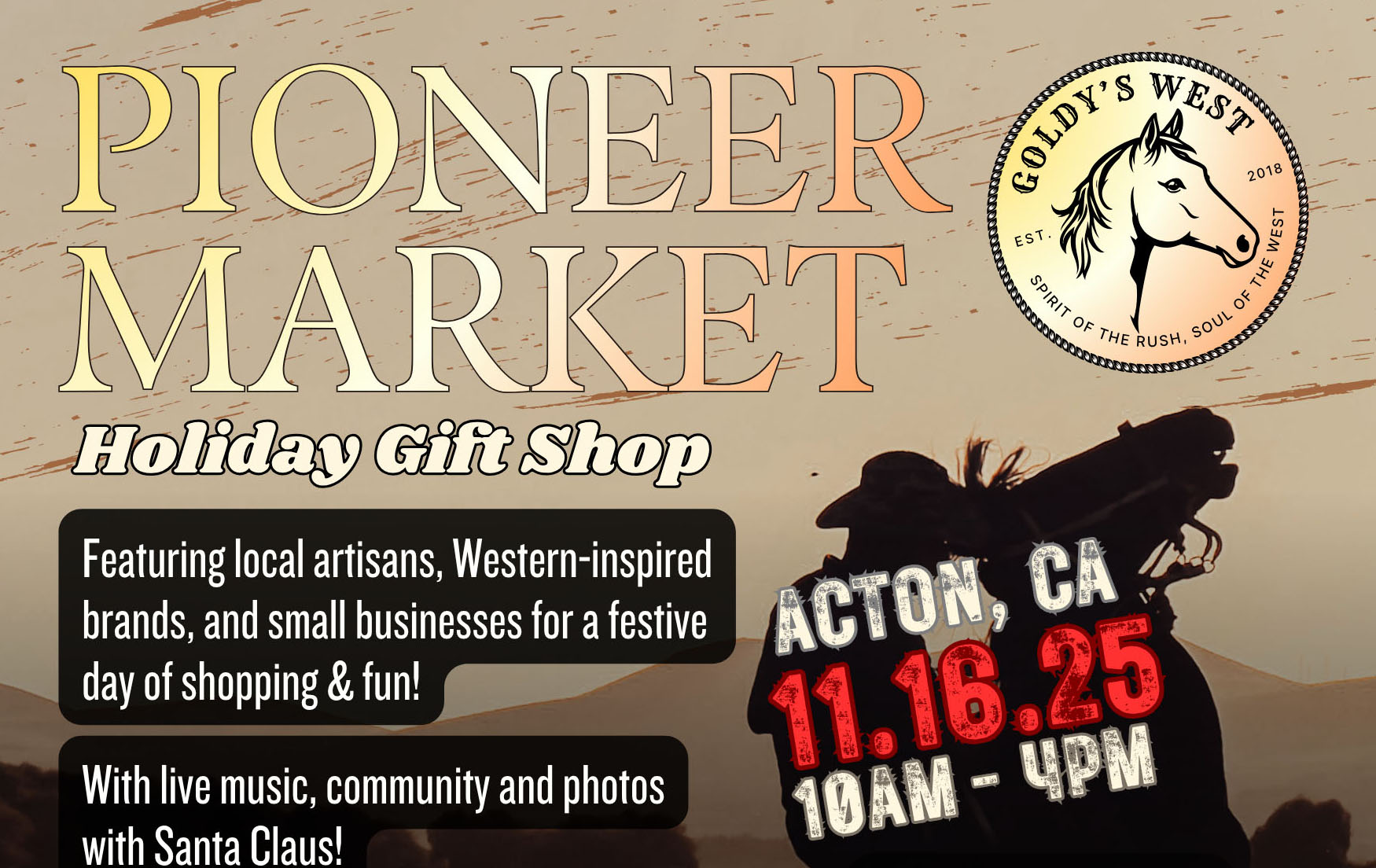 Pioneer Market Holiday Gift Shop will be held on Sunday, Nov. 16, from 10 a.m. to 4 p.m. at 31924 Crown Valley Road, Acton CA, 93510.