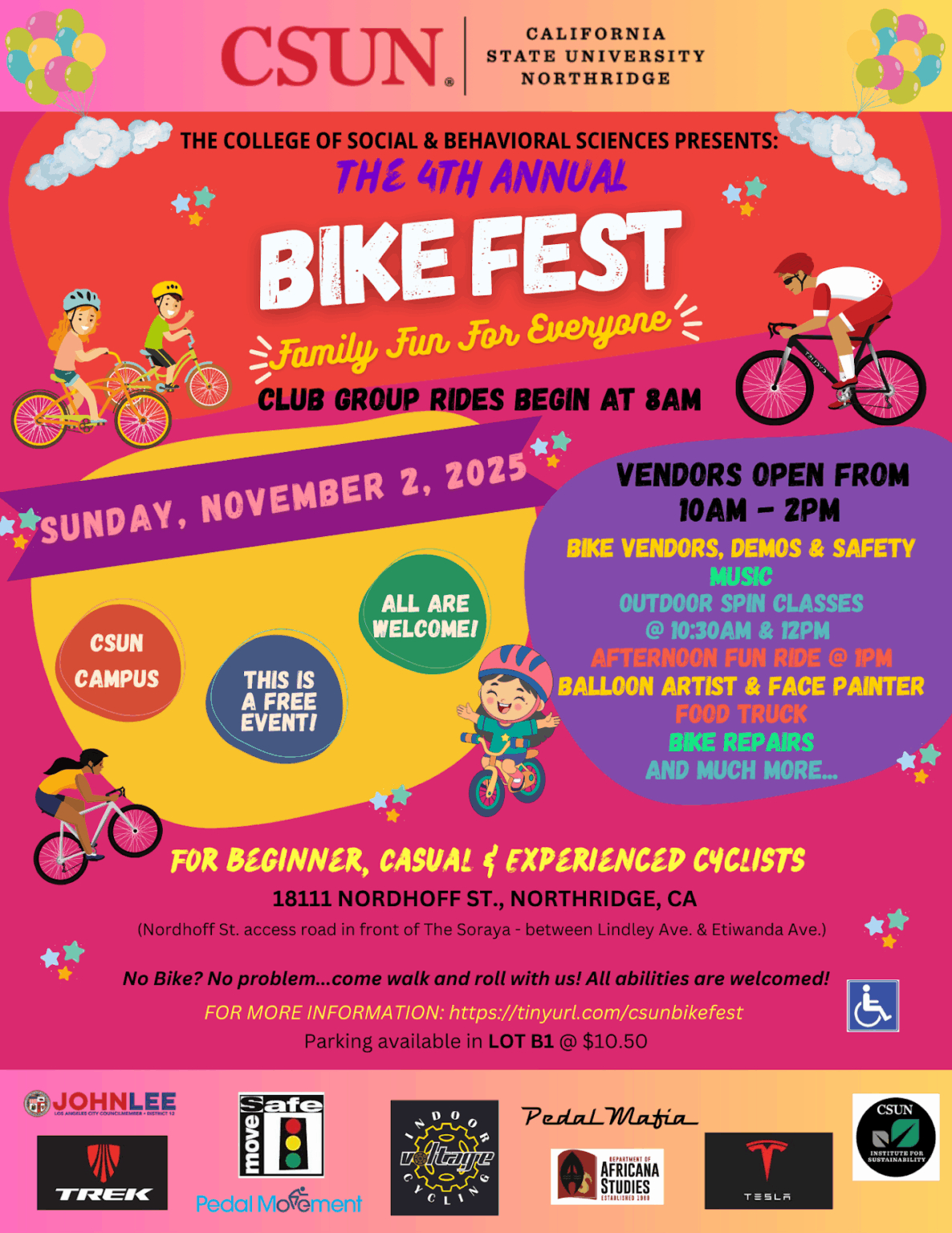 California State University, Northridge’s College of Social and Behavioral Sciences will host CSUN’s fourth annual BikeFest on Sunday, Nov. 2 from 8 a.m. to 2 p.m. BikeFest is free and open to the public.