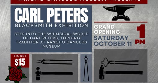 Attend the Oct. 11, 1 p.m. opening of a fascinating new exhibit at the Rancho Camulos Museum.  Step into the Whimsical World of Carl Peters, the immigrant blacksmith who lived and worked at Camulos from about 1920 to 1943.