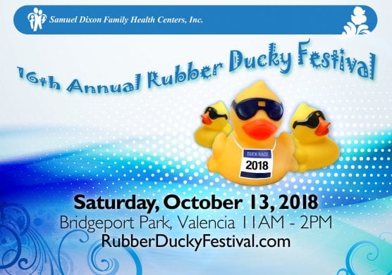 The 16th Annual Rubber Ducky Festival to benefit the nonprofit Samuel Dixon Family Health Centers will take place on Saturday, Oct. 13, from 11 a.m. to 2 p.m. at Bridgeport Park in Valencia.