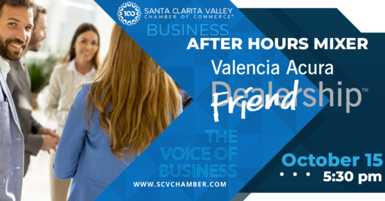 Join the Santa Clarita Valley Chamber of Commerce for the October Business After Hours Mixer Wednesday, Oct. 15, 5:30-7:30 p.m. at Valencia Acura.