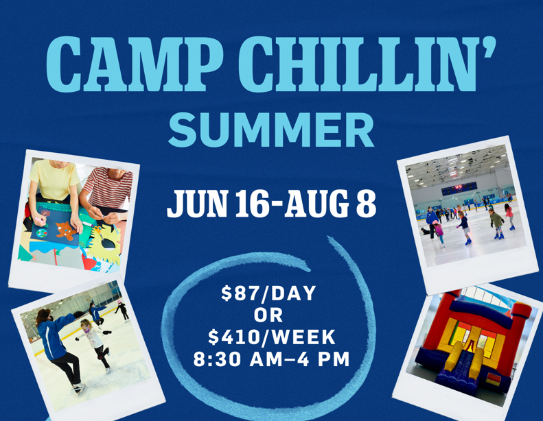 Camp Chillin’ blends expert instruction with high-energy activities. Campers start each day with skating lessons led by professional instructors, followed by off-ice games, crafts and team-building fun—all under the guidance of trained staff who ensure a safe and welcoming environment for all skill levels.
