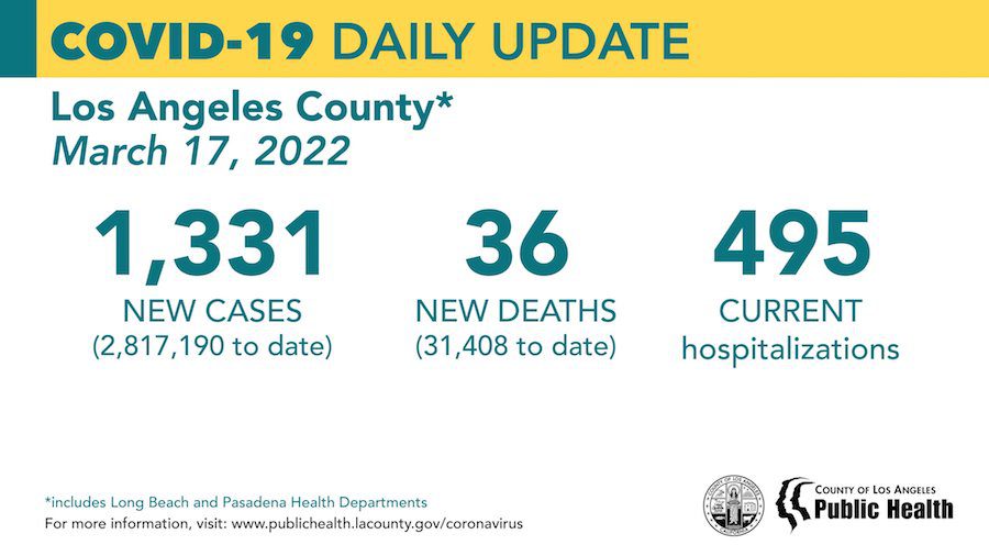 The Los Angeles County Department of Public Health confirmed Thursday 36 additional deaths and 1,331 new cases of COVID-19 countywide, with 22 new cases in the Santa Clarita Valley.