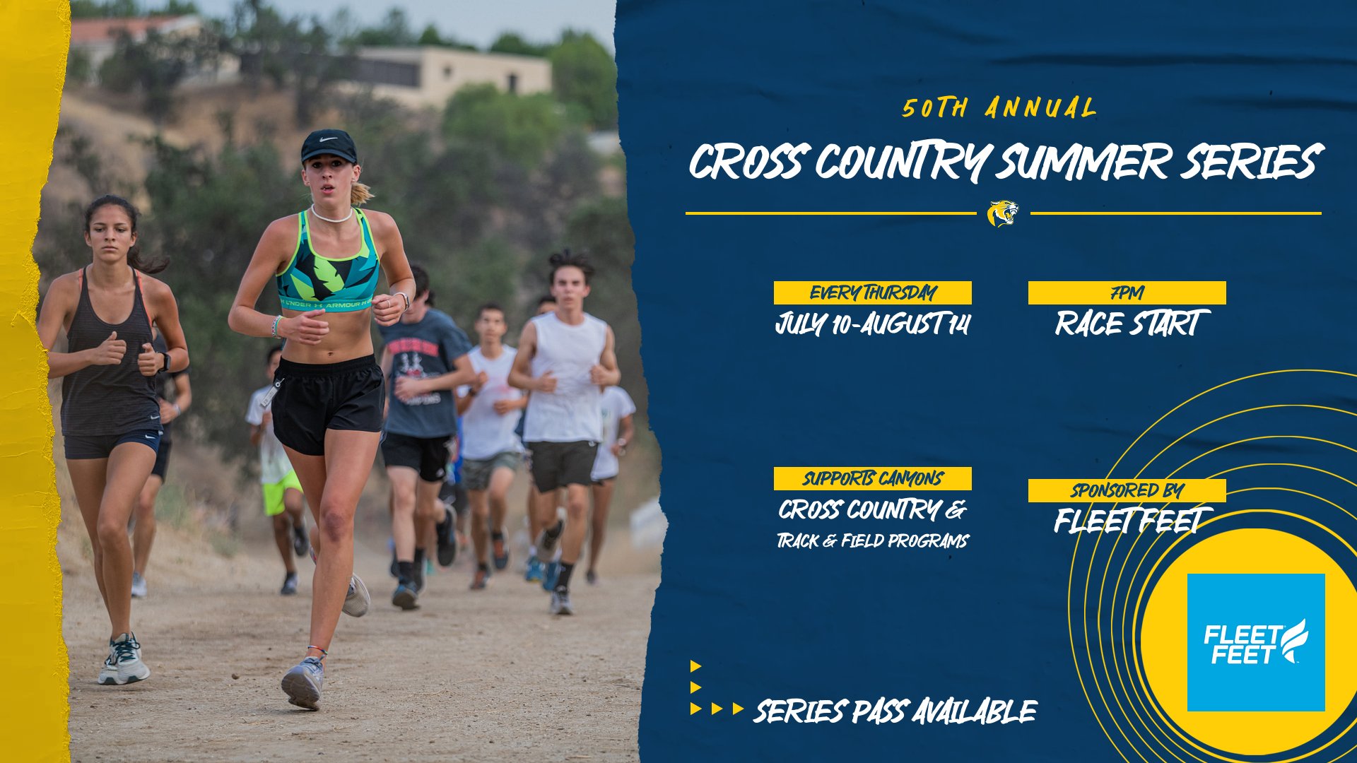 Runners of all ages are invited to support the College of the Canyons cross country and track & field programs by participating in the 50th Annual Cross Country Summer Series, sponsored by Fleet Feet, on Thursday evenings from July 10 to Aug. 14.