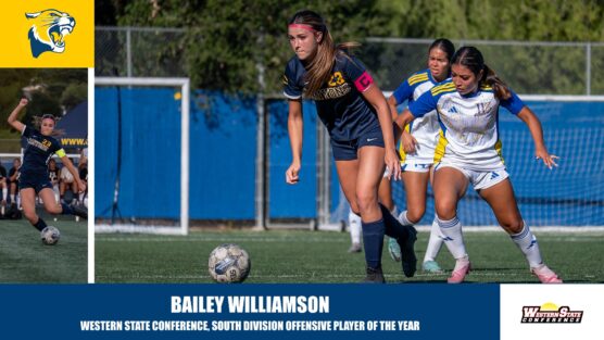 Her season assist total tied for the WSC lead, while the Canyon High School alum also ranked third in goals and second in points. Along the way, Williamson, who served as a team co-captain, logged 65 shots in her 21 games to lead the conference, with 48 of those attempts coming on goal.